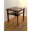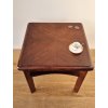 Stolek jsme zbavili starých laků, obrousili na dřevo, namořili na odstín ořech a nalakovali polomatným lakem na nábytek. Nyní je stolek jako nový. Na stolku bylo vždy položeno sklo, které vám v případě zájmu také zašleme. Sklo má jeden oštipek, je původní, jinak běžné lehké opotřebení.
