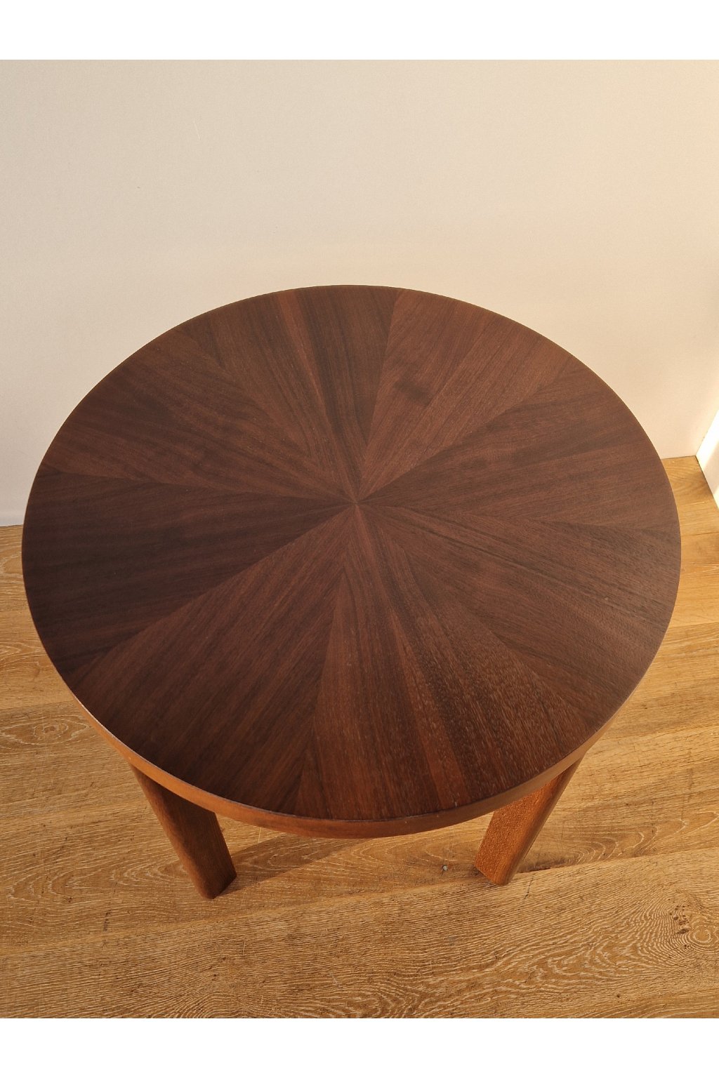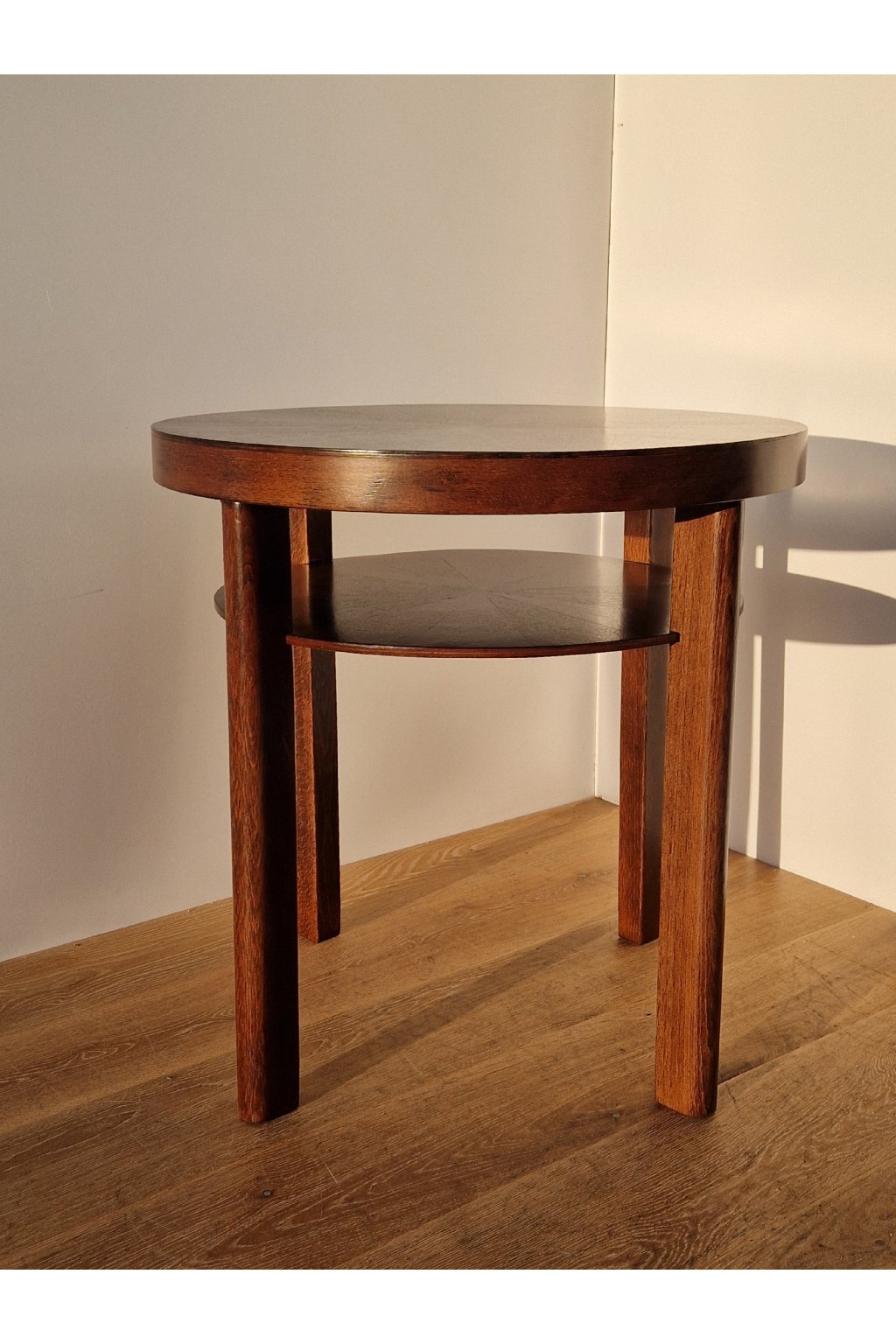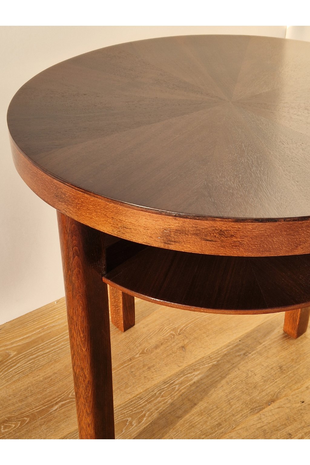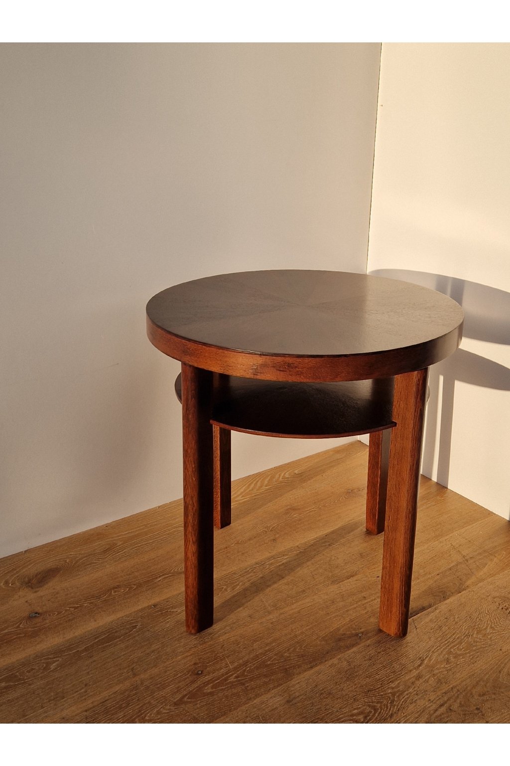 Velice elegantní starožitný stolek vyrobený firmou THONET, značený, s nádhernou sesazenkou ořechové dýhy na desce stolu. Po naší profesionální renovaci.