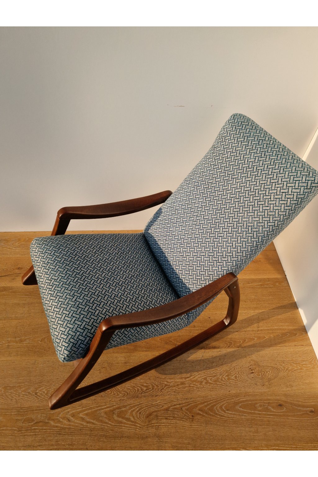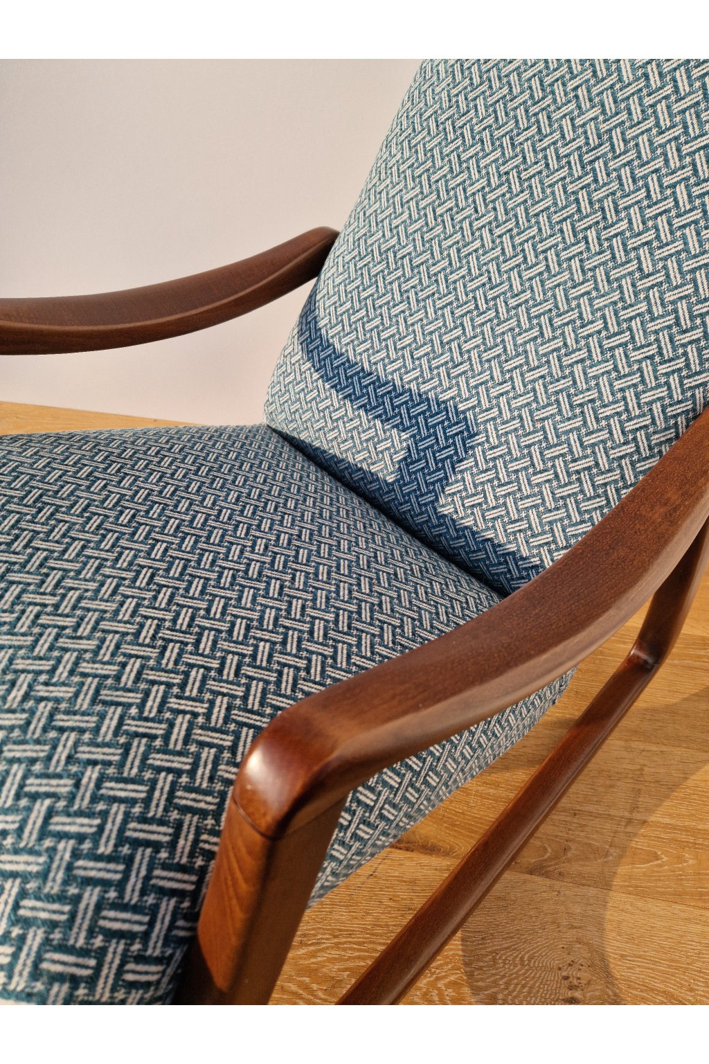 Vnitřní čalounění je nové z kvalitního přírodního latexu. Křesílko je potaženo kvalitní potahovou tkanou látkou, vysokého Martendale 69.000 která v kombinaci se dřevem vypadá luxusně.