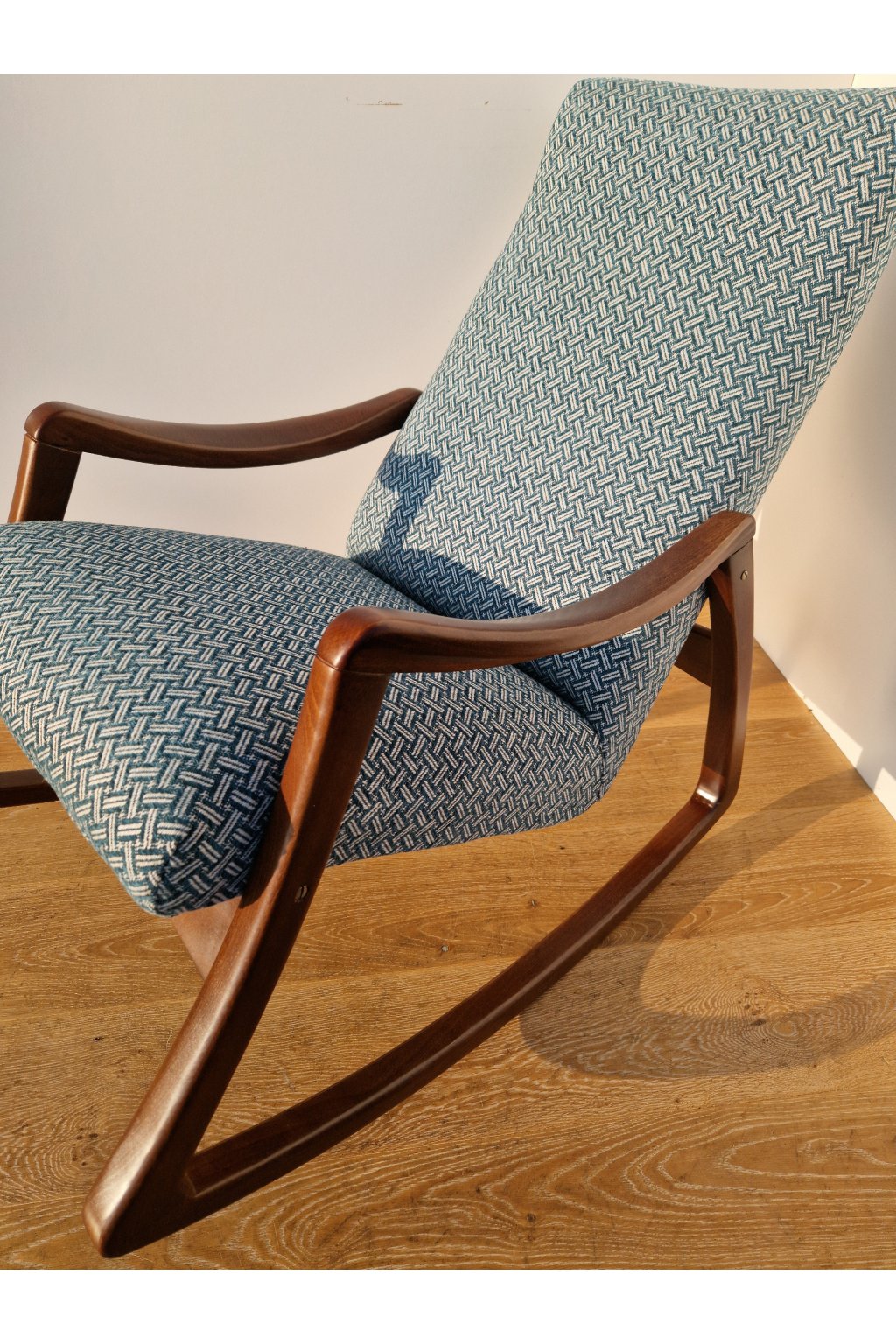 Designově nadčasové, málo vídané a velmi pohodlné houpací křeslo Ton ze 60. let. Vyrobeno - Bystřice pod Hostýnem.
