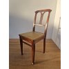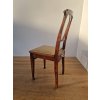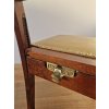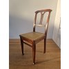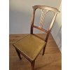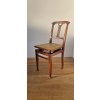 Židli jsme celou rozebrali, dřevěné části zbavili nánosů barev, namořili na odstín ořech a nalakovali polomatným polyuretanovým lakem na nábytek. Čalounění jsme udělali z nové kůže zlaté barvy značenou razítkem SVIT. Kůže již asi něco také pamatuje... ale přišla mi tak hezká, že sem je tam nemohla nechat. A zakoupila sem všechny kusy co měli.