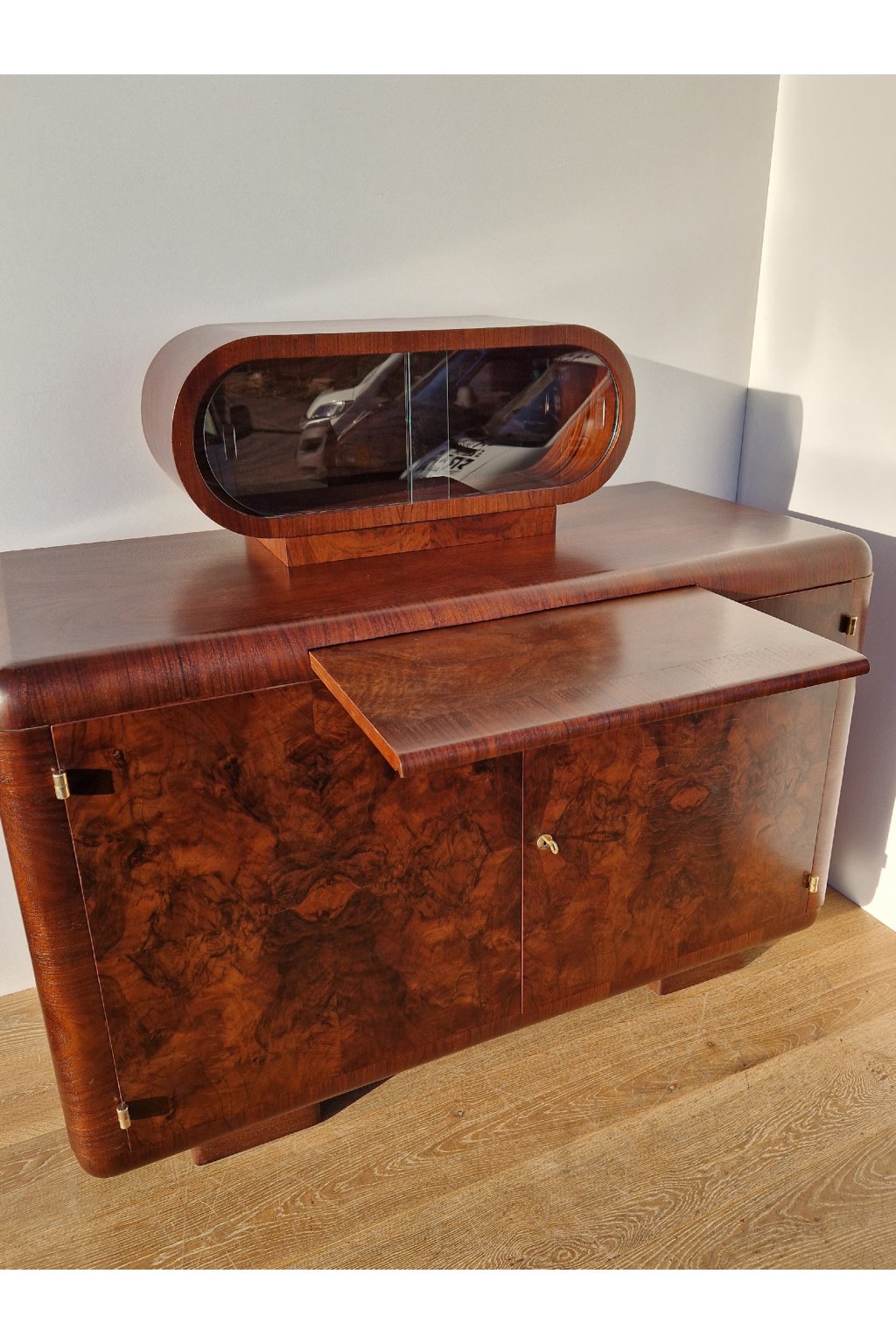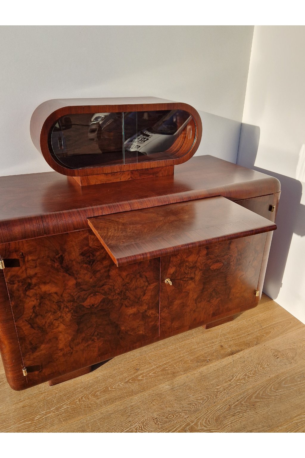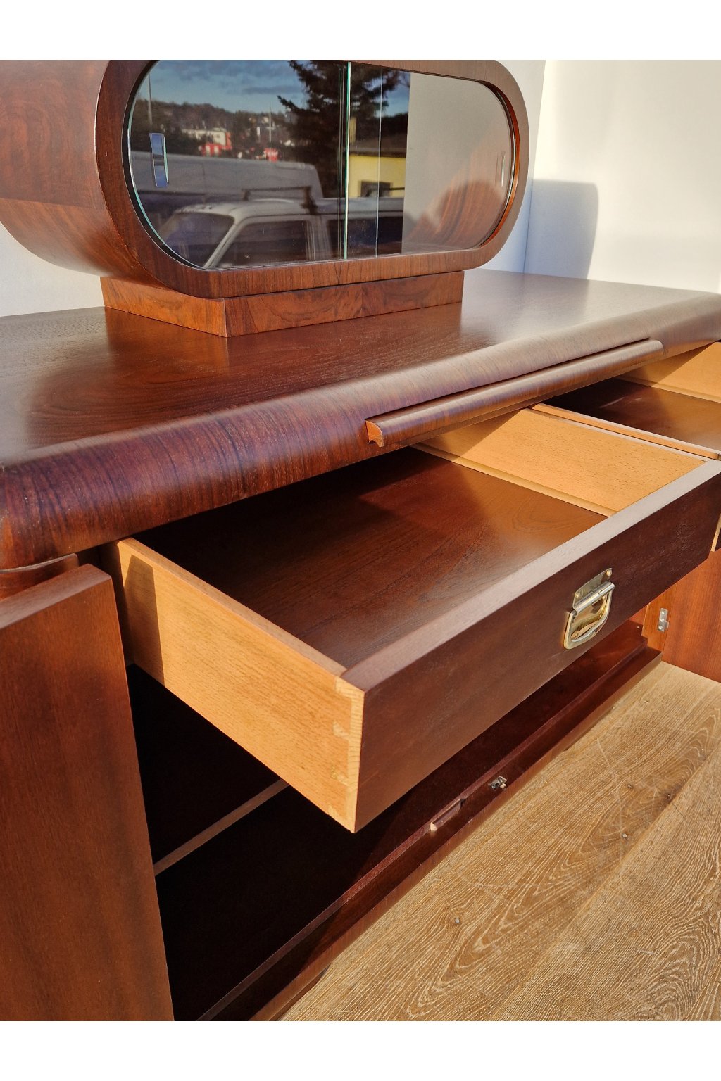Do našich rukou se dostal nádherný bufet-komoda, pravděpodobně vyrobený v ÚP závodech ve 30. letech minulého století. Jedinečný kousek, který si zamilujete nejen pro jeho krásné tvary, ale i pro pečlivou řemeslnou práci, kterou jsme mu věnovali.