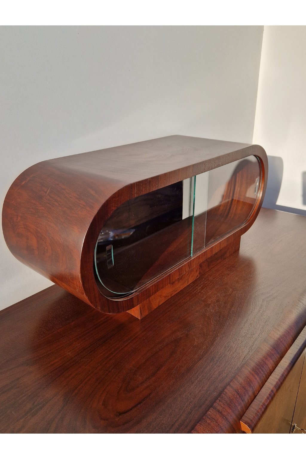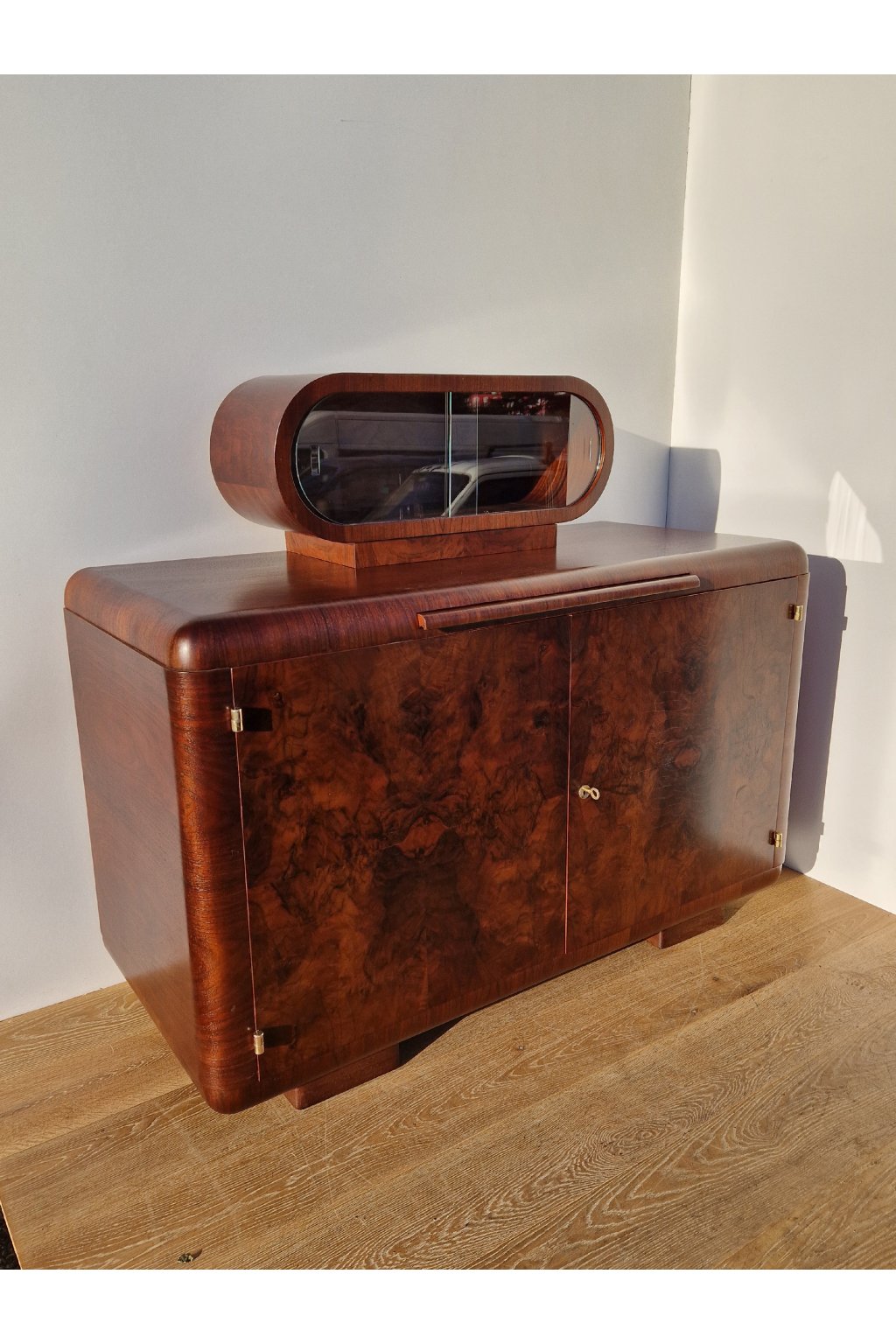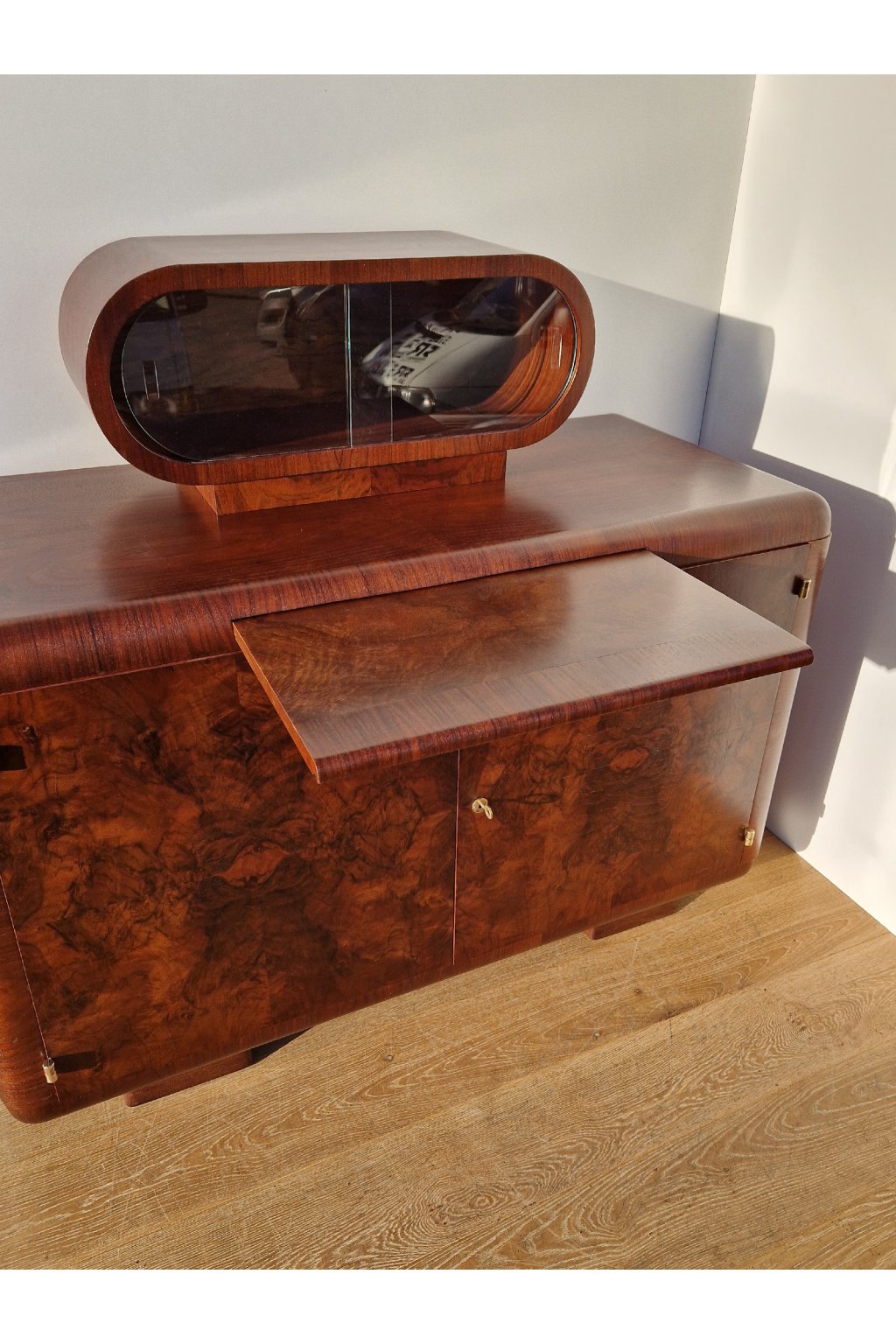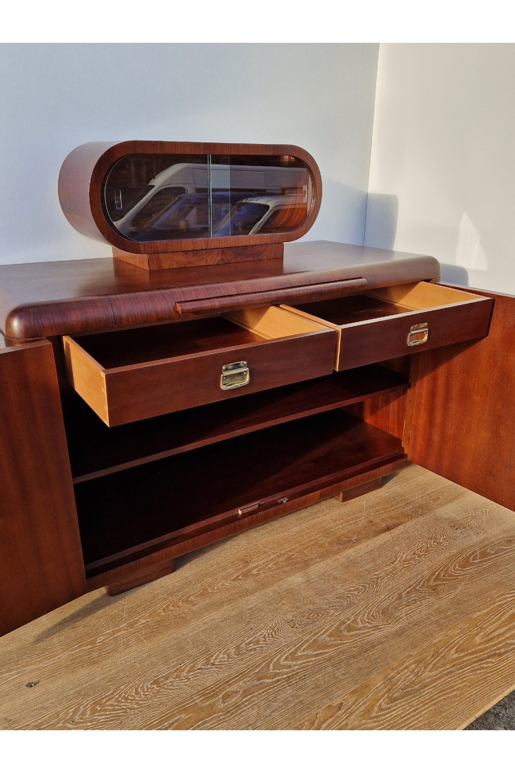 Do našich rukou se dostal nádherný bufet-komoda, pravděpodobně vyrobený v ÚP závodech ve 30. letech minulého století. Jedinečný kousek, který si zamilujete nejen pro jeho krásné tvary, ale i pro pečlivou řemeslnou práci, kterou jsme mu věnovali.