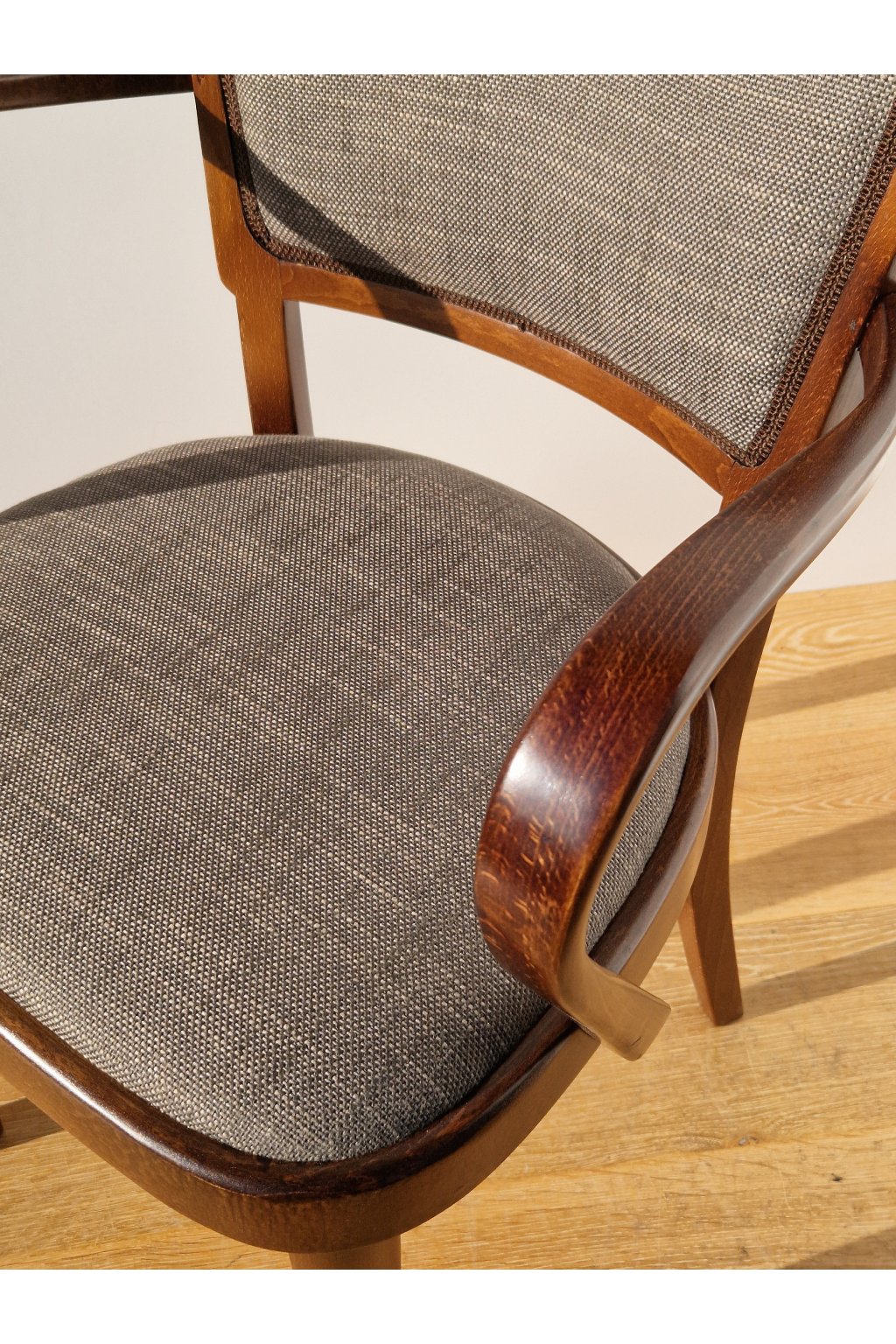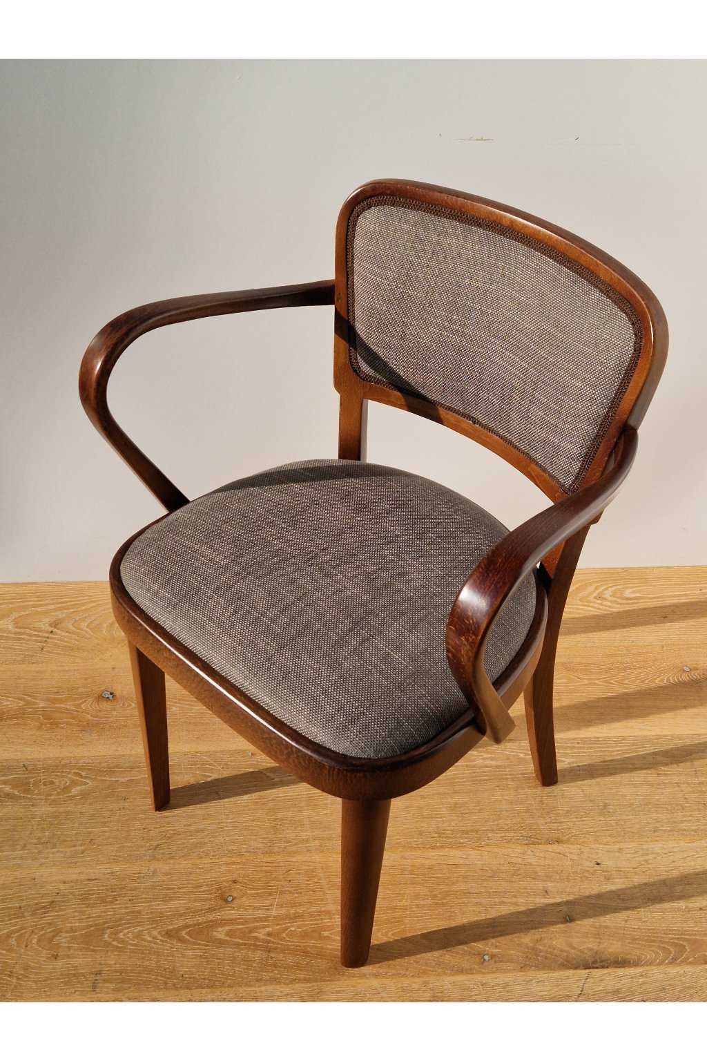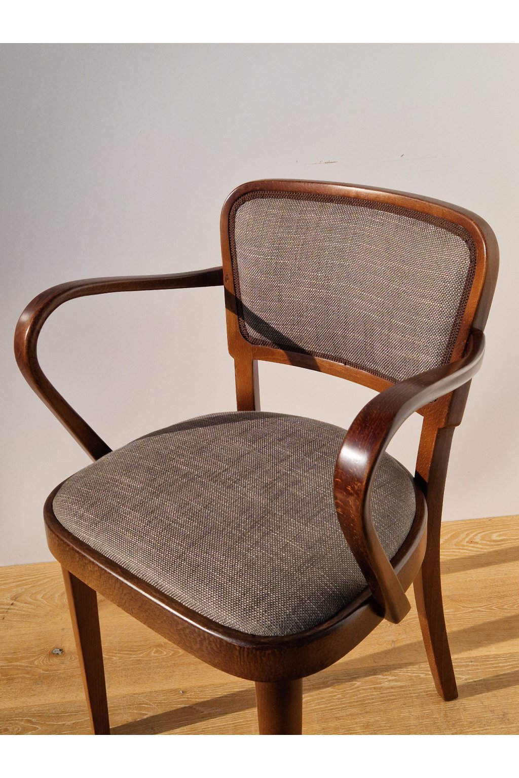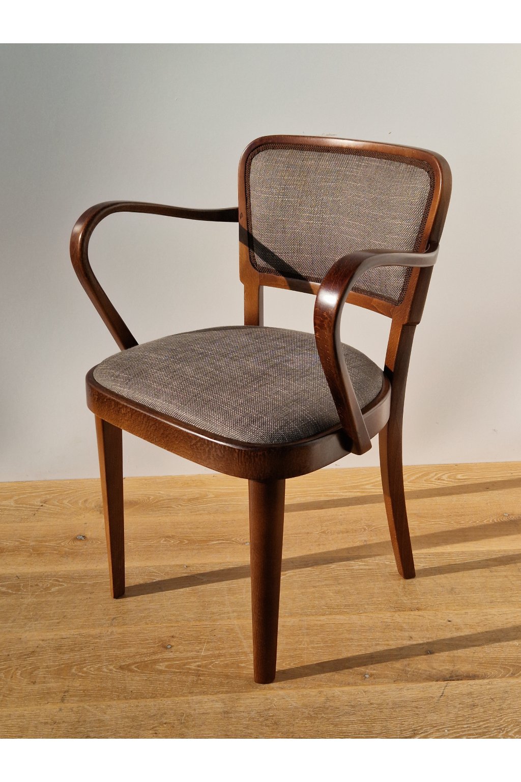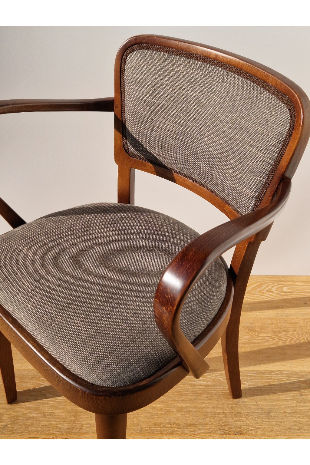 Velmi pohodlné stylové polokřeslo firmy THONET z ohýbaného bukového dřeva, značené po naší profesionální renovaci.