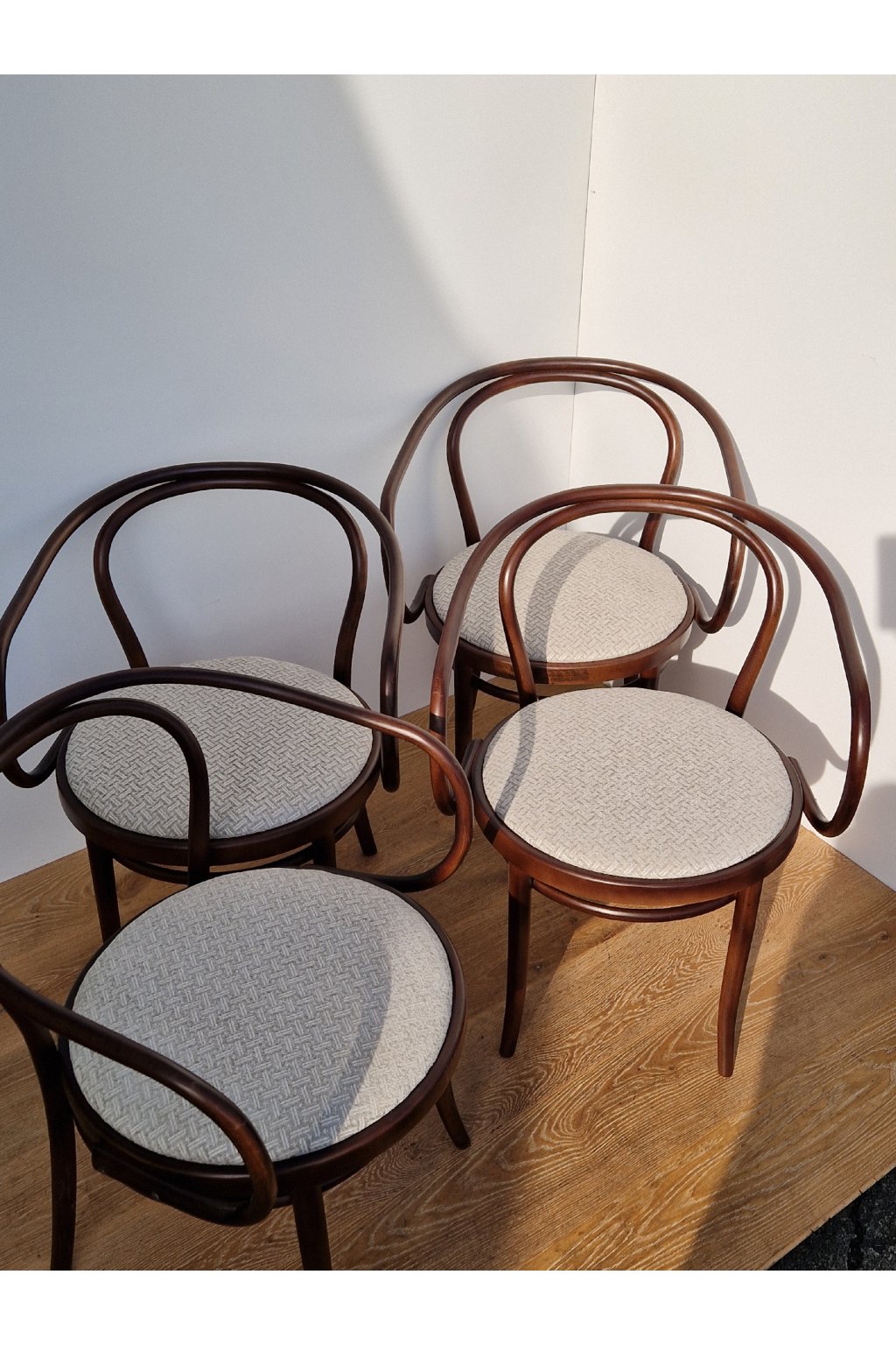 Řemeslně perfektně zpracované, dokonalé proporce, příjemné posezení. To jsou židle Ton č. 30. A auto jsou po naší profesionální renovaci, značené, poctivě vyrobené z ohýbaného bukového dřeva.