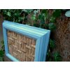Rám obrazu jsme vyrobili z masivního borového dřeva. Udělali jsme mu krásnou plastickou povrchovou úpravu. Drátěným a nylonovým kartáčem jsme vydrásali měkká léta a vynikly ta tvrdá. Nastříkán míchanou polomatnou blankytně modrou kvalitní barvou, která je určena na nábytek a dětské hračky.