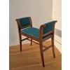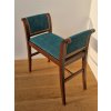 Staré čalounění jsme odstranili a udělali nové čalounění- nové jutové popruhy, nová juta a přírodní latexová pěna. Potaženo velmi kvalitní tkanou potahovou látkou která v kombinaci se dřevem a zlatohnědou bortou vypadá luxusně.
