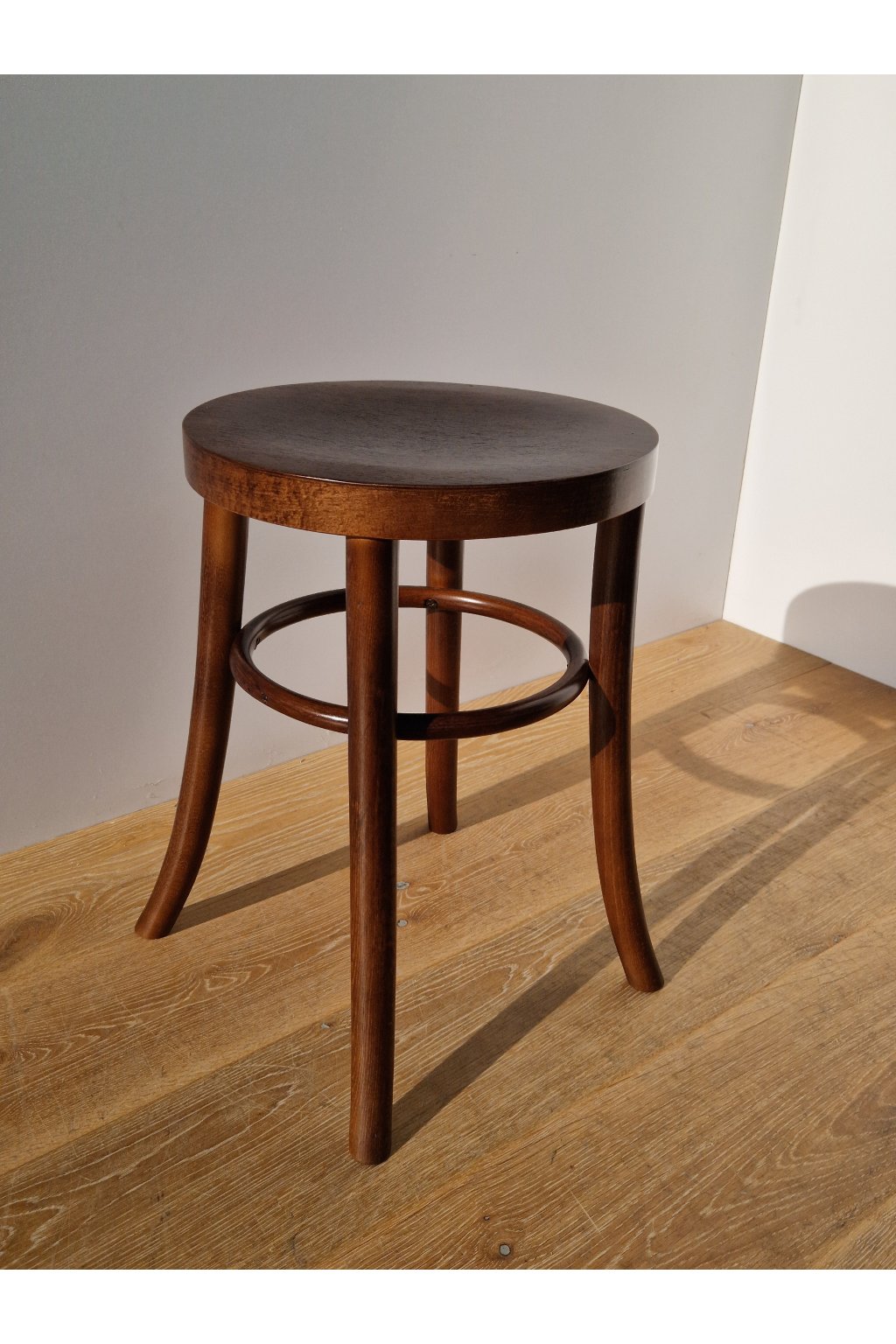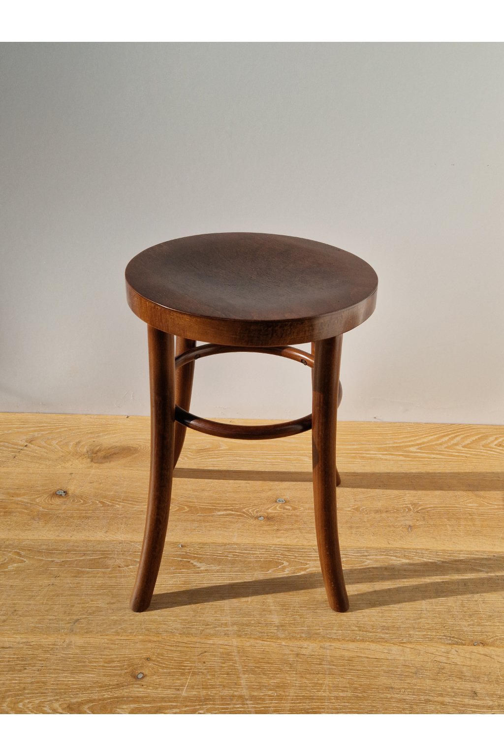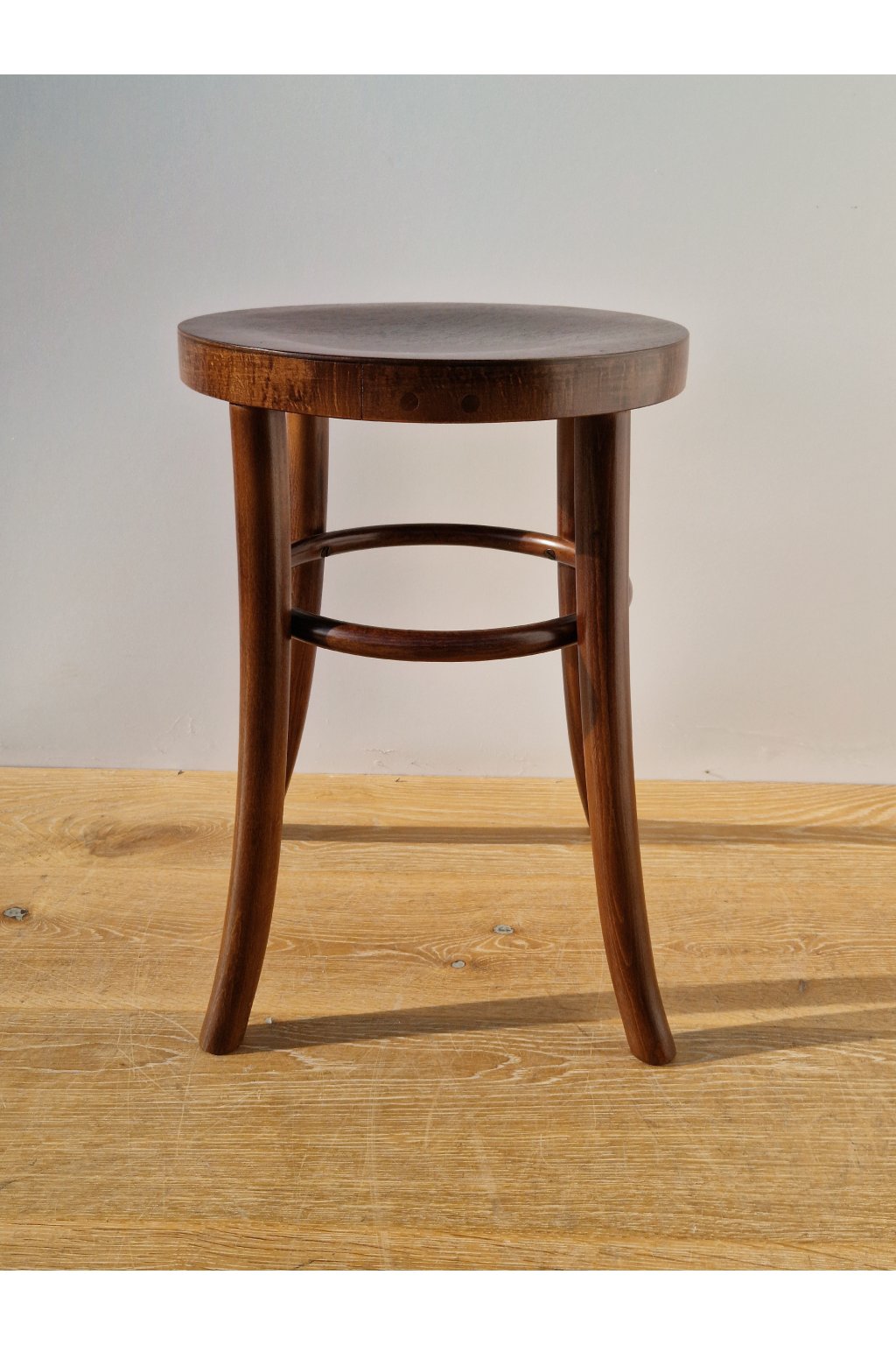 Starožitná praktická stolička z ohýbaného bukového dřeva po naší profesionální renovaci.